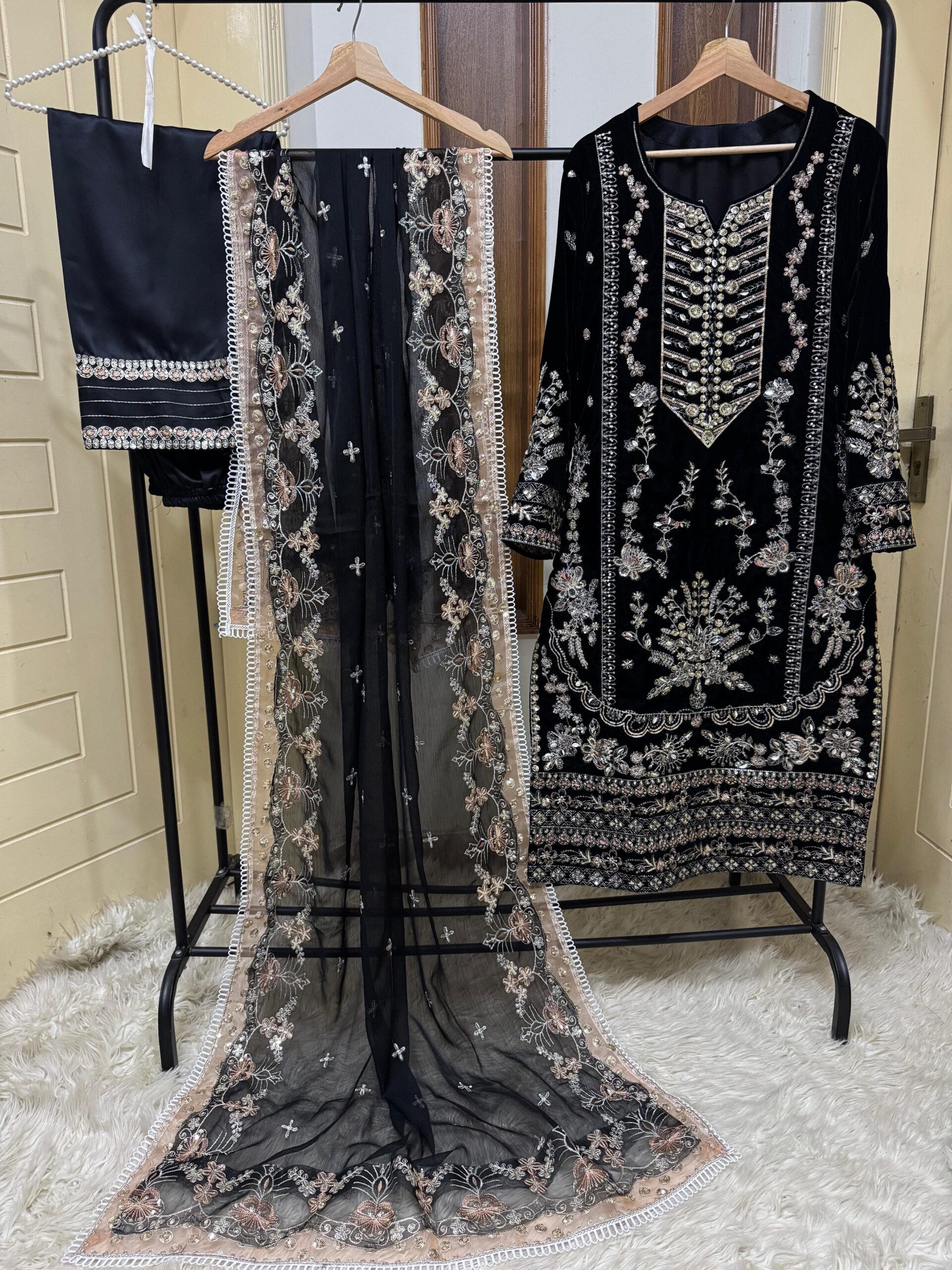Organza 4 sided Embroidered Dupatta