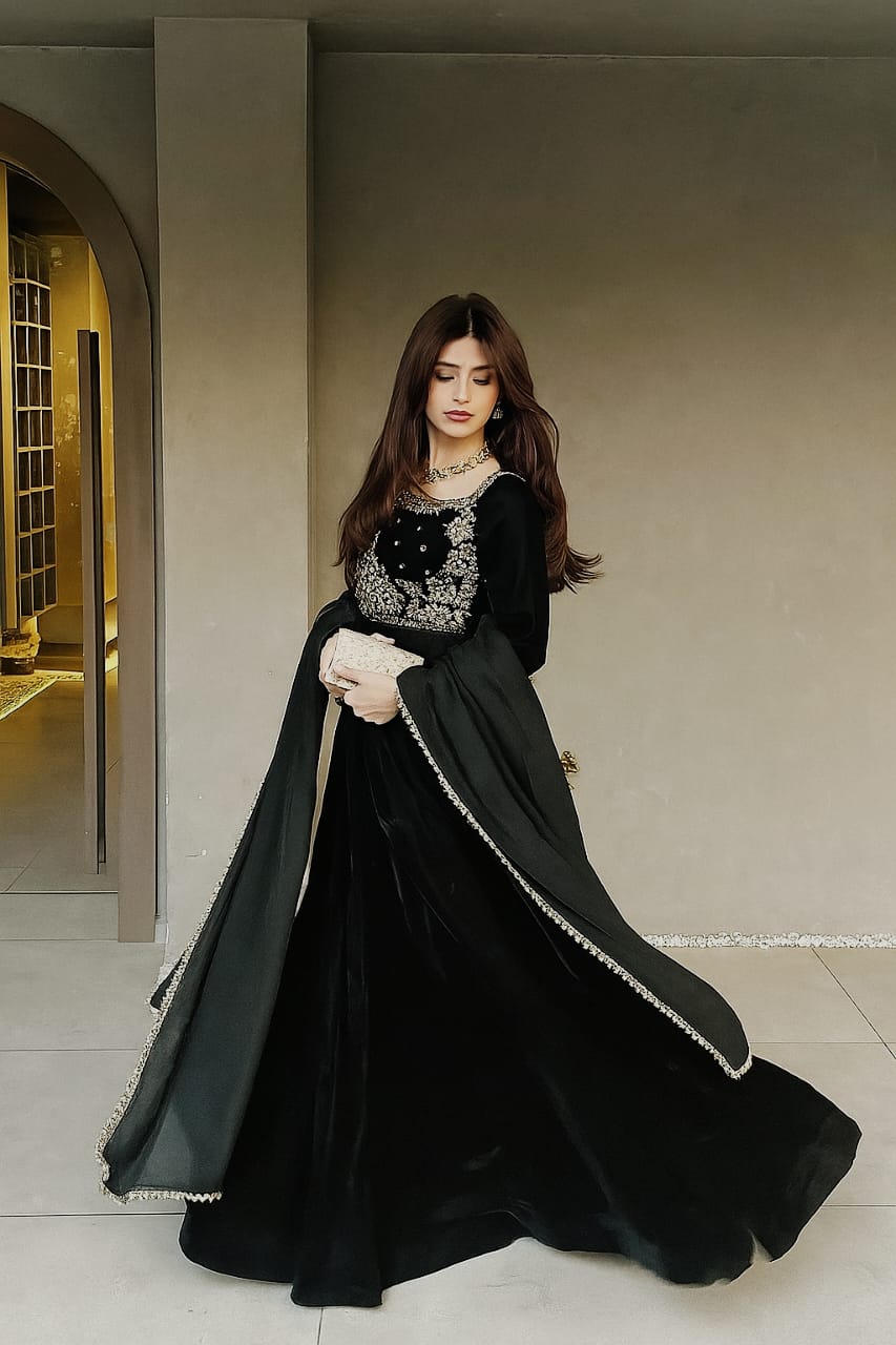 Sequins tilla Embroidery Chiffon Dupatta with lace Embellished