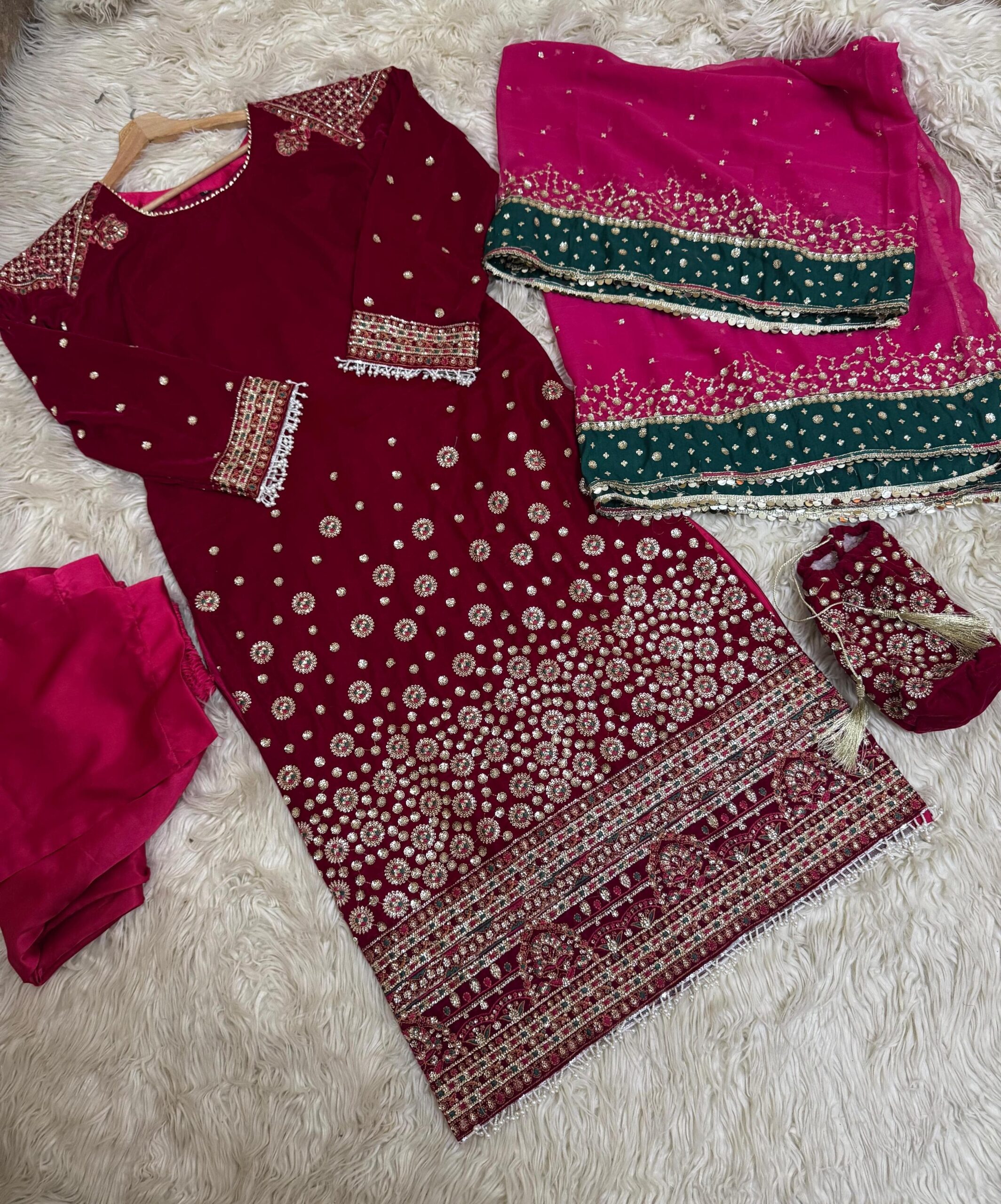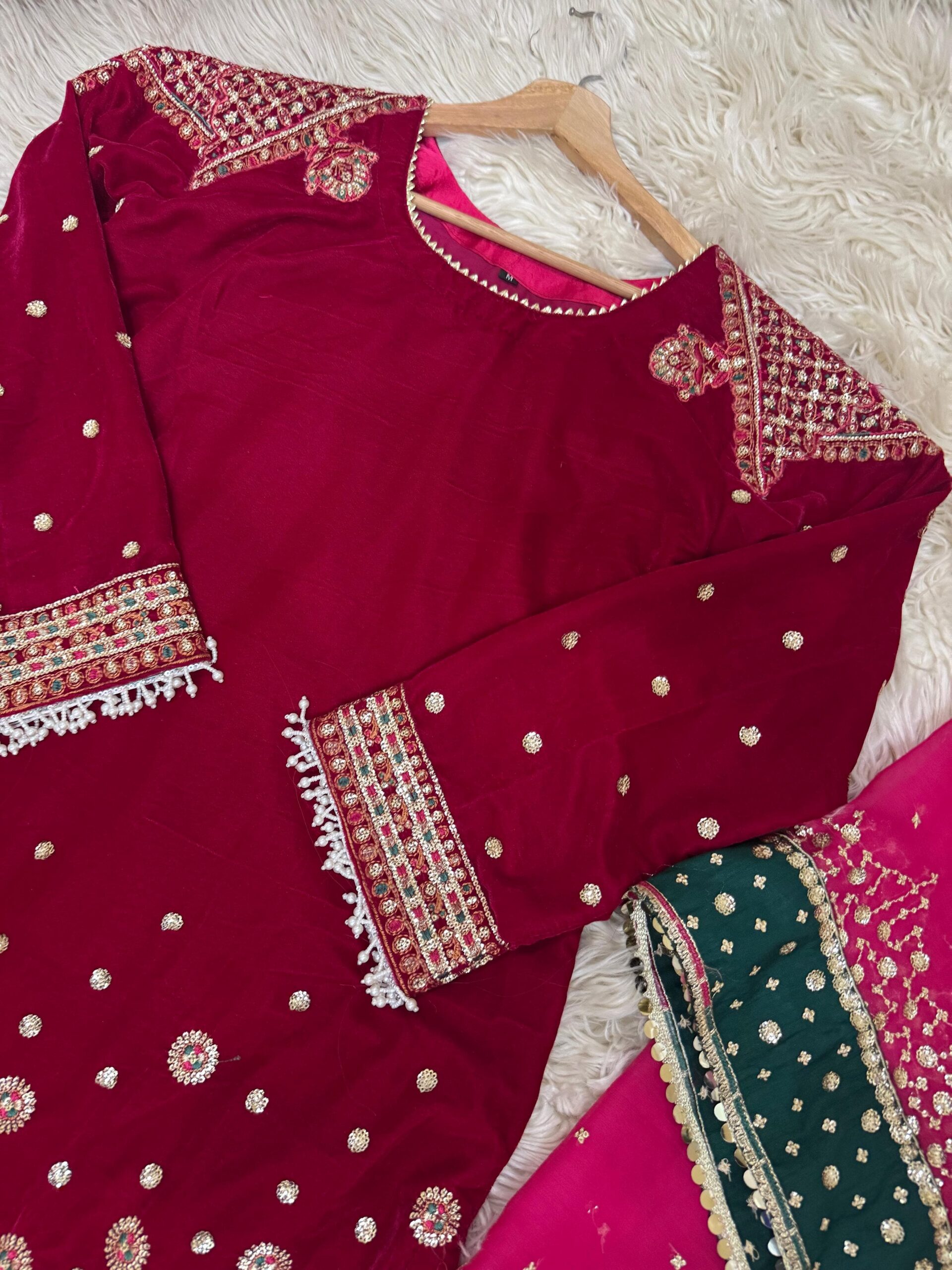Fully Sequins Embroidery Shirt Embellished with fancy laces